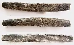 La grivna était un marc monétaire. Matériellement, elle prend la forme de lingotin coulé sous une forme fuselée ou rhombique, parfois estampillé avec un timbre d'authenticité. Des barres en argent de ce type et de même poids, mais sans contremarque et parfois martelées, ont été découvertes dans le trésor de Spillings datant de l'âge des Vikings, au maximum du Xe siècle[1].