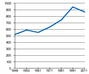 - 1 2 (sq) « Évolution de la population 1948-2011 », sur pop-stat.mashke.org (consulté le ).
