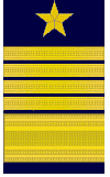 Sur les manches figurent quatre bandes moyennes, s'ajoutant à une bande large, et surmontées d'une étoile. |