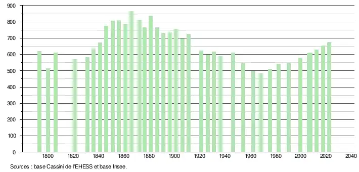 - ↑ Population municipale de référence en vigueur au 1er janvier 2025, millésimée 2022, définie dans les limites territoriales en vigueur au 1er janvier 2024, date de référence statistique : 1er janvier 2022.