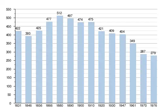 - Sources : INS, Rem. : 1831 jusqu'en 1970 = recensements, 1976 = nombre d'habitants au 31 décembre.