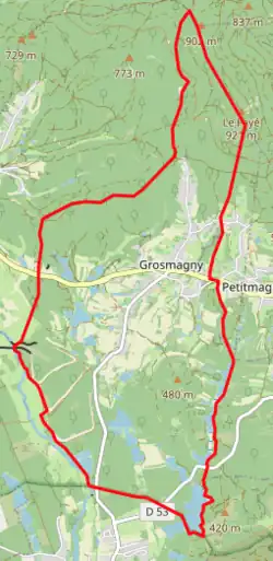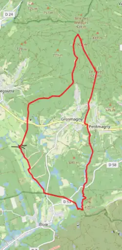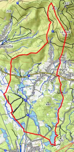 - ↑ « Orthodromie entre Grosmagny et Giromagny », sur fr.distance.to (consulté le ).