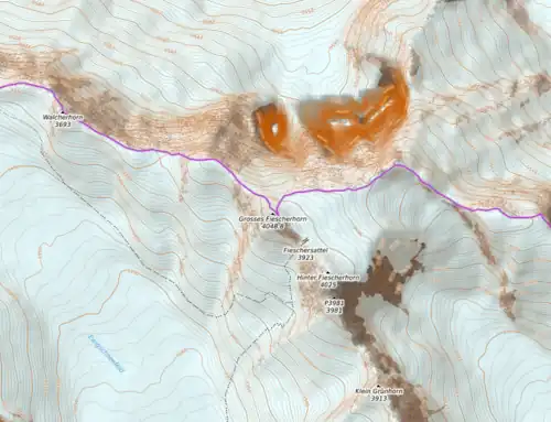 | Voie la plus facile | Arête Sud-Est depuis le refuge Mönchsjoch (PD) | |||