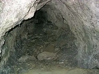 Dans la couche inférieure des os de faune paléolithique archaïque et des outils grossiers marquent une occupation du Moustérien ou de l'Aurignacien[1].