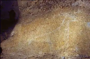 Plusieurs gravures de quadrupèdes et séries de lignes et de taches rouges ont été répertoriées. Les figures les plus notables sont un cerf et une biche face à face, réalisés avec des lignes incisées très fines. Les figures peuvent être attribuées à une phase avancée du style IV d'André Leroi-Gourhan, qui se rattache au Magdalénien.