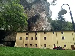 La grande grotte d'origine tectonique dont la profondeur atteint environ 20 possède deux autels dédiés à saint Michel et à la Madone du Saint-Esprit accessibles par deux escaliers en pierre, dont le premier qui a été construit s'appelle le Saint-Escalier. D'autres autels sont dédiés à Notre-Dame des Douleurs et à saint Joseph et saint Antoine de Padoue. Le couvent d'origine, gravement endommagé par le tremblement de terre de Marsica en 1915 et les deux guerres mondiales, a été reconstruit à partir de 1952. Le bâtiment moderne de trois étages qui abrite le réfectoire et l'hospice est situé près de l'entrée de la grotte et est flanqué d'un clocher construit en 1957.