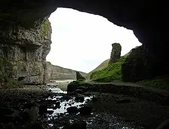 La grotte calcaire mesure 60 m de long, 40 m de large et l'arche au-dessus de l'entrée fait plus de 15 m de haut. Cela en fait la grotte marine la plus accessible des îles Britanniques. Composée de deux chambres en forme de T, la grotte est facilement accessible par un chemin escarpé. La grotte peut également être visitée en bateau. Son intérieur est éclairé par des projecteurs.