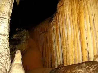 - ↑ En spéléologie, le développement correspond à la longueur cumulée des galeries interconnectées qui composent un réseau souterrain.