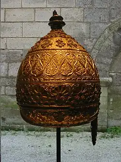 - ↑ C.Eluère, J.Gomez de Soto, A-R.Duval, « Un chef-d'œuvre de l'orfèvrerie celtique, le casque d'Agris (Charente) », Persée, (consulté le )