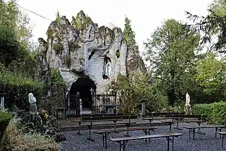 Outre la grotte, le site se développa en un sanctuaire marial de grande dimension. D’autres grottes artificielles – elles sont 18 - furent créées entre 1887 et 1893. Dans chacune une scène de la vie de Marie avec statues de taille humaine. En tout plus d’une centaine de statues en plâtre, moulées et peintes. Le curé Laloux s'assura pour cette réalisation, de la collaboration du statuaire Émile Biernaux, de Namur.