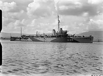 - ↑ (en) Geoffrey B. Mason, « Service Histories of Royal Navy Warships in World War 2 », sur naval-history.net, Gordon Smith, (consulté le )