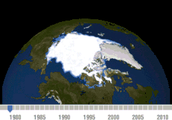 109. (en) V.M. Kotlyakov, « Variations of Snow and Ice in the past and at present on a Global and Regional Scale » [PDF], International hydrological programme, sur UNESCO Documents and publications, UNESCO, (consulté le ) : « The extrapolar glaciation of the Earth will be decaying at rapid, catastrophic rates—its total area will shrink from 500,000 to 100,000 km² by the year 2350. ».