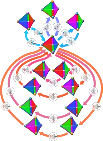 Comme ci-dessus, le groupe d'automorphismes de l'espace induit une action de groupe sur les objets qu'il contient.
