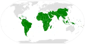 Créée par 77 pays, l'organisation a grandi et compte actuellement 134 pays membres[6] :