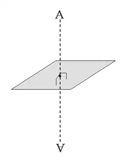 - 2 correspond à une rotation de π suivie d’une inversion (Figure 3), ce qui est équivalent à une réflexion par rapport à un plan perpendiculaire à l’axe de la rotation. Cette opération est plus fréquemment indiquée comme m, réflexion par rapport à un miroir.