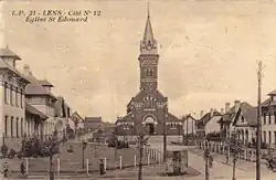 La plupart des installations de la cité, dont les écoles et l'église, sont détruits par les bombardements de la Première Guerre mondiale. Une chapelle provisoire prend à nouveau la place de l'église, celle-ci est reconstruite à l'identique à partir de 1924 sur les plans de Louis Marie Cordonnier, en même temps que les écoles. Les ailes des écoles sont reconstruites avec l'adjonction d'un niveau supplémentaire. Le groupe scolaire, l'église et les bâtiments annexes forment un ensemble cohérent au cœur des corons[1].