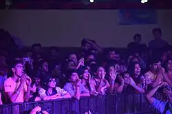 - ↑ Barrière concrétisée par la limite entre la salle de spectacle et le backstage[9].