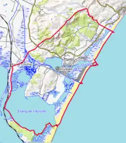 La répartition détaillée en 2018 est la suivante : eaux maritimes (30,2 %), zones humides côtières (20,5 %), milieux à végétation arbustive et/ou herbacée (13,5 %), cultures permanentes (10,5 %), forêts (9,5 %), espaces ouverts, sans ou avec peu de végétation (4,9 %), zones agricoles hétérogènes (4 %), zones urbanisées (3,4 %), espaces verts artificialisés, non agricoles (1,7 %), zones industrielles ou commerciales et réseaux de communication (1 %), prairies (0,8 %)[19]. L'évolution de l’occupation des sols de la commune et de ses infrastructures peut être observée sur les différentes représentations cartographiques du territoire : la carte de Cassini (XVIIIe siècle), la carte d'état-major (1820-1866) et les cartes ou photos aériennes de l'IGN pour la période actuelle (1950 à aujourd'hui)[Carte 2].