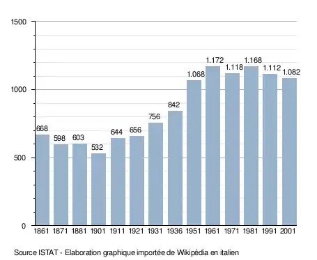 - ↑ (it) Popolazione residente e bilancio demografico sur le site de l'ISTAT.