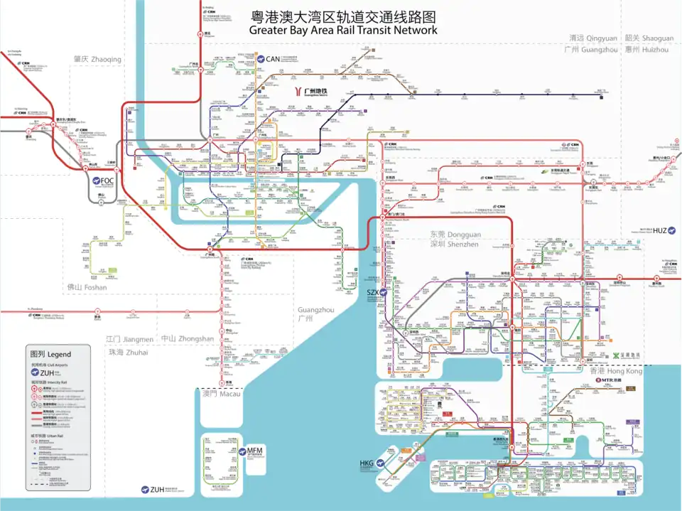 Le Guangdong possède de nombreux réseaux de métro qui sont prévus d'être interconnectés :
