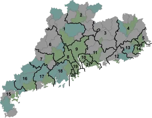 | Subdivisions administratives du Guangdong | |||||||||||