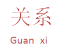 Bien qu’utilisé oralement depuis un siècle auparavant, le terme guanxi n’apparaît pas historiquement dans les dictionnaires classiques chinois[3], ni dans le Ci Yuan 词渊(« Source des mots », publié en 1915) ni dans le Ci Hai 词海 (« Mer de mots », publié en 1936). Le terme consiste en deux caractères chinois, le premier, guan 关 et le second, xi 系.