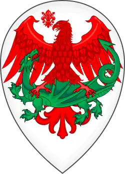 Armoiries d'une famille italienne avec en chef l'aigle royal, typique d'une allégeance gibeline