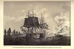 Le capitaine Forrest du Prometheus commande l'opération qui aboutit à la capture des canonnières no 62, no 65 et no 66 ainsi que du brick de transport no 11. La bataille est cependant sanglante puisque, du côté anglais, on compte 19 morts et 51 blessés pour 28 morts et 59 blessés du côté russe[9].