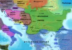 Le pillage de Dobroudja par les Magyars avait montré à quel point l’empire bulgare était menacé au nord par l’influence de la diplomatie byzantine[38]. En 917, Siméon mit à profit cette expérience en réussissant à faire échec aux tentatives des Byzantins de s’allier aux Serbes et aux Petchenègues, les forçant à combattre seuls lors de la bataille d'Anchialos où les Byzantins furent vaincus, subissant l’une des pires défaites de leur histoire[44].