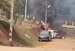 Des membres des Forces de défense du peuple karenni (KPDF) dans l'État de Kayah capturent également et détruisent plusieurs avant-postes de la Tatmadaw près de la capitale de l'État, Loikaw[91]. Vers la fin du mois de mai, la Tatmadaw utilise de l'artillerie et des hélicoptères pour frapper les positions des PDF et des KPDF à Loikaw et Demoso[92]. Le , l'Armée de l'Indépendance Kachin rejoint la PDF dans une bataille contre les troupes de la junte dans le canton de Katha, tuant huit soldats du régime. Des combats éclatent également dans d'autres cantons de l'État kachin, notamment à Putao (en), Hpakant et Momauk (en)[93].