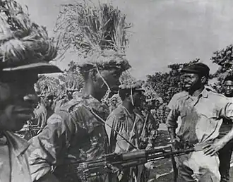 En réponse, le Portugal envoie un renfort massif de soldats et de forces de sécurité au Mozambique. Il passe également des accords de défense mutuelle avec la Rhodésie et l'Afrique du Sud voisines[15]. En 1970, les Portugais lancent l'opération Nœud Gordien, qui parvient en un premier temps à éliminer plusieurs guérilléros du FRELIMO et à détruire ses bases au nord du pays ; cependant, le déploiement massif de troupes portugaises au nord du pays permet au FRELIMO d'intensifier ses attaques ailleurs dans le pays. L'année suivante, le Portugal établit une alliance militaire informelle avec la Rhodésie et l'Afrique du Sud appelée Exercice Alcora (en)[18]. Des représentants de la défense des trois pays s'engagent à se rencontrer régulièrement afin d'échanger des informations de renseignement et de mener des opérations coordonnées contre les mouvements nationalistes dans leurs pays respectifs. En même temps, le FRELIMO entretien d'étroites relations avec les nationalistes rhodésiens ; par exemple, vers 1971, une alliance est signée avec la Zimbabwe African National Liberation Army (ZANLA)[18]. Les insurgés de la ZANLA sont autorisés à entrer en Rhodésie par les territoires contrôlés par le FRELIMO. Vers la fin des années 1960, l'Armée de libération du peuple azanien (APLA) profite également de la dispersion des militaires portugais pour infiltrer l'Afrique du Sud de la même manière[19].