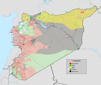 Carte de la guerre civile syrienne, régulièrement mise à jour[1]