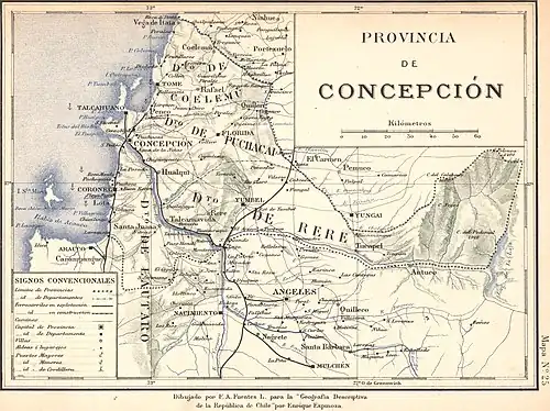 Valdivia part lui-même en 1546 avec 60 cavaliers, des porteurs et des guides indigènes. Il franchit la rivière Itata. Il affronte des guerriers mapuches à la bataille de Quilacura, près du fleuve Biobío. S'avisant qu'il est impossible de progresser dans un milieu aussi hostile avec des forces limitées, Valdivia décide sagement de retourner à Santiago. Il a cependant reconnu un site favorable pour ériger une nouvelle cité, site connu actuellement sous le nom de Penco, et qui sera le premier établissement de Concepción