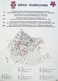 Le , la marine yougoslave reprend son blocus des principaux ports de Croatie. Cette action suit plusieurs mois d'immobilisme des forces de la JNA et coïncide avec la fin de l'opération Coast-91 au cours de laquelle l'armée yougoslave a échoué à prendre le contrôle de la côte pour couper l'accès de la Dalmatie au reste de la Croatie[140]. Le , le président Tuđman fait un discours dans lequel il appelle l'ensemble de la population à se mobiliser contre l'"impérialisme de la Grande Serbie" poursuivi par la JNA et les forces paramilitaires serbes[104]. Le , l'armée de l'air yougoslave attaque les bâtiments gouvernementaux à Zagreb[141],[142]. Le jour suivant, après l'expiration du moratoire de trois mois, le parlement croate coupe ses derniers liens avec la Yougoslavie[13]. Le bombardement des bureaux gouvernementaux et le siège de Dubrovnik qui commence en octobre[143] mènent à la mise en place de sanctions contre la Serbie par l'Union européenne[144],[145]. L'attention des médias internationaux se concentre sur les dommages causés à l'héritage culturel de Dubrovnik et les inquiétudes concernant les populations civiles passent au second plan[146]. Ainsi, le quartier historique classé au Patrimoine mondial de l'UNESCO est la cible de plus de 650 tirs d'artillerie[147].