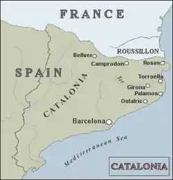 Le plus petit front de la guerre fut celui de Catalogne. En 1689, le duc de Noailles et les troupes françaises avaient accru la pression sur l'Espagne en soutenant un soulèvement populaire contre Charles II, qui avait commencé en 1687. Exploitant la situation, le duc de Noailles capture Camprodon le , mais une puissante armée espagnole menée par le duc de Villahermosa le force à se replier dans le Roussillon français[63]. La campagne de Catalogne se calme en 1690 mais le nouveau front du Piémont-Savoie se durcit. La haine des Savoyards envers les Français et les animosités religieuses engendrèrent un théâtre caractérisé par des massacres et des atrocités : les attaques constantes de guérilla menées par des civils étaient réprimées dans le sang[64]. En 1690, le marquis de Saint-Ruth s'empare de la majeure partie du duché de Savoie, et force l'armée savoyarde à se replier dans la grande forteresse de Montmélian restée entre les mains ducales. Au sud, dans le Piémont, Nicolas de Catinat mène 12 000 hommes et écrase les troupes de Victor-Amédée II à la bataille de Staffarda le . Catinat s'empare immédiatement de Saluces, Savillan, Fossano, et Suse mais le manque de troupes et les épidémies le forcent à repasser les Alpes pour l'hiver[65].