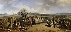 En 1693, l'armée française comptait théoriquement 400 000 hommes mais Louis XIV devait faire face à une crise économique[78]. Les mauvaises récoltes en France et Italie du Nord et les hivers très rigoureux provoquèrent une terrible famine qui, à la fin 1694, avait coûté la vie à près de deux millions de personnes[79]. Malgré tout, afin d'offrir une paix à son avantage à la Grande Alliance, Louis XIV décide de reprendre l'offensive : Luxembourg attaquerait dans les Flandres, Catinat en Italie du Nord et Lorges en Allemagne avec l'offensive sur Heidelberg. La ville tombe le , mais la solide défense du nouveau commandant impérial sur le Rhin, Louis-Guillaume de Bade-Bade, empêche les Français de progresser davantage. Le maréchal de Luxembourg est plus chanceux dans les Flandres. Après avoir pris Huy le , le commandant français déjoue les plans de Guillaume III et l'attaque par surprise entre les villages de Neerwinden et de Landen. La bataille du fut courte et coûteuse, mais les forces françaises, dont la cavalerie montra une fois de plus sa supériorité, l'emportèrent[80]. Luxembourg et Vauban prennent Charleroi le , qui avec les prises antérieures de Mons, Namur et Huy, fournit aux Français une nouvelle et solide ligne de défense[81].