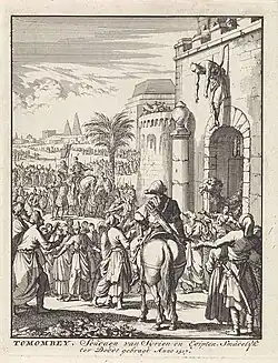 Le 13 avril 1517, Tumanbay est emmené à dos de chameau puis pendu à la porte du Caire[31],[23],[9]. Le 16 avril, les restes de Tumanbay sont enterrés sur ordre de Sélim avec les honneurs dus à son rang.