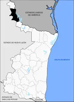 Cette municipalité dépend de la région Norte, appelée aussi Región Fronteriza, qui est une des 6 subdivisions administratives de l'État de Tamaulipas, et regroupe les municipalités de Nuevo Laredo, Guerrero, Mier, Miguel Alemán, Camargo, Gustavo Díaz Ordaz, Reynosa, Río Bravo, Valle Hermoso et Matamoros[4].