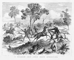 Les guerres de la frontière en Australie sont des guerres de conquête coloniale qui ont opposé les colons européens et les Australiens autochtones (Aborigènes d'Australie et Indigènes du détroit de Torrès, notamment)[2]. Le nom « guerres de la frontière » (en anglais, frontier wars) fait référence à la frontière de la colonie britannique, que les occupants cherchaient à repousser toujours plus loin. Le premier conflit a eu lieu en 1788 quelques mois après le débarquement de la Première flotte britannique ; les derniers conflits frontaliers se sont produits au début du XXe siècle, jusqu'en 1934. La région de l'Australie qui compte le plus grand nombre de morts est le Queensland, où des spécialistes estiment le nombre de tués à 65 000 pour les Australiens autochtones, et à 2 000 pour les colons.