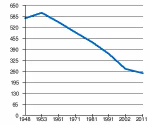 | 576 | 606 | 553 | 493 | 433 | 364 | 280[2] | 250[1] |