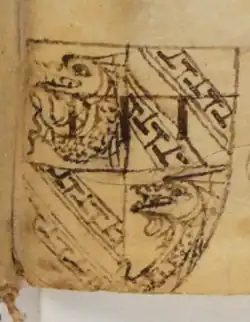 Commentaires : D'après la Chronique du religieux de Saint-Denys, le connétable de Sancerre, sans alliance ni enfants légitimes, lui aurait demandé, « pour ne pas voir périr avec luy les armes de sa maison », de les écarteler avec les siennes[2] qui étaient : d'azur, à la bande d'argent, cotoyée de deux cotices d'or, potencées et contre-potencées, au lambel de gueules, brochant sur le tout. |