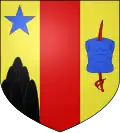 D'or, au pal de gueules, accosté à dextre d'un rocher de six coupeaux, 1, 2, 3, de sable, surmonté d'une étoile d'azur, et à sénestre d'une cuirasse d'azur, traversée en pal d'un sabre de gueules.[2],[5] |