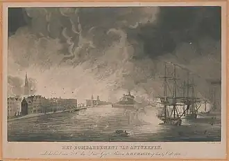 Le , les troupes néerlandaises sous le commandement du prince Bernard de Saxe-Weimar-Eisenach et du général David Chassé, bombardent Anvers, faisant 85 morts ainsi que des dégâts considérables, et provoquant l'indignation de la population des provinces belges. En conséquence de quoi, le Congrès national belge vote l'exclusion à perpétuité de la maison d'Orange-Nassau du trône de Belgique lors du décret constitutionnel du 24 novembre 1830 :