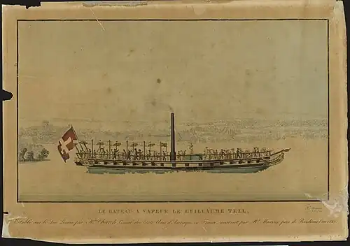 Le Guillaume Tell est le premier bateau à vapeur en Suisse. Lancé le , il transporte le public dès le .