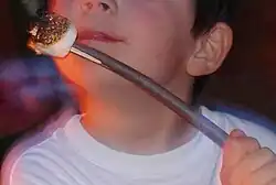 Dans la culture populaire américaine et canadienne[3], on consomme également la guimauve grillée, généralement lors de veillées autour d'un feu de camp. La guimauve est placée au bout d'un bâton et grillée au-dessus du feu. Cela caramélise sa surface et liquéfie son cœur. Les guimauves grillées encore chaudes sont donc très collantes et il est très facile pour les consommateurs pressés de se brûler les lèvres.