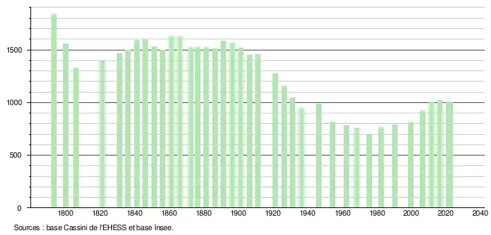- ↑ Fiches Insee - Populations de référence de la commune pour les années 2006, 2007, 2008, 2009, 2010, 2011, 2012, 2013, 2014, 2015, 2016, 2017, 2018, 2019, 2020, 2021 et 2022.