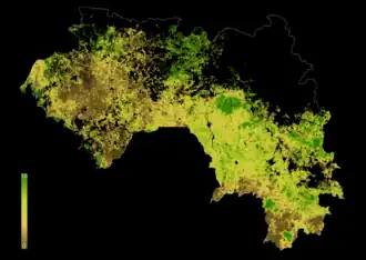 L'environnement en Guinée semble préservé grâce à la faible densité de population et à l'industrialisation limitée.