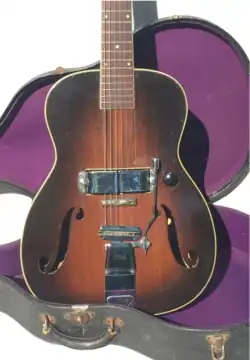Selon André Duchossoir, la première guitare électrique était un modèle acoustique muni d'un capteur électrostatique, réalisé par Lloyd Loar, alors luthier chez Gibson Guitar Corporation[4], Loar quitta la firme Gibson en 1924, poursuivit le développement des instruments à cordes acoustiques et électriques, et en breveta un avec un capteur électromagnétique, comme les guitares électriques actuelles, en 1934[5].