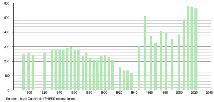 - ↑ Fiches Insee - Populations de référence de la commune pour les années 2006, 2007, 2008, 2009, 2010, 2011, 2012, 2013, 2014, 2015, 2016, 2017, 2018, 2019, 2020, 2021 et 2022.