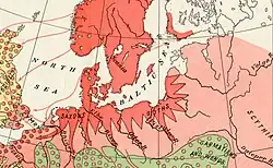 - ↑ In, Kossinna, « Die indogermanische Frage archäologisch beantwortet », Zeitschrift für Ethnologie, 1902, no 34, p. 161–222.